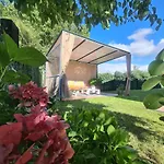 从房间可以欣赏花园风景. 这家别墅的所有3间浴室都配坐浴盆,独立卫生间 和浴缸.
